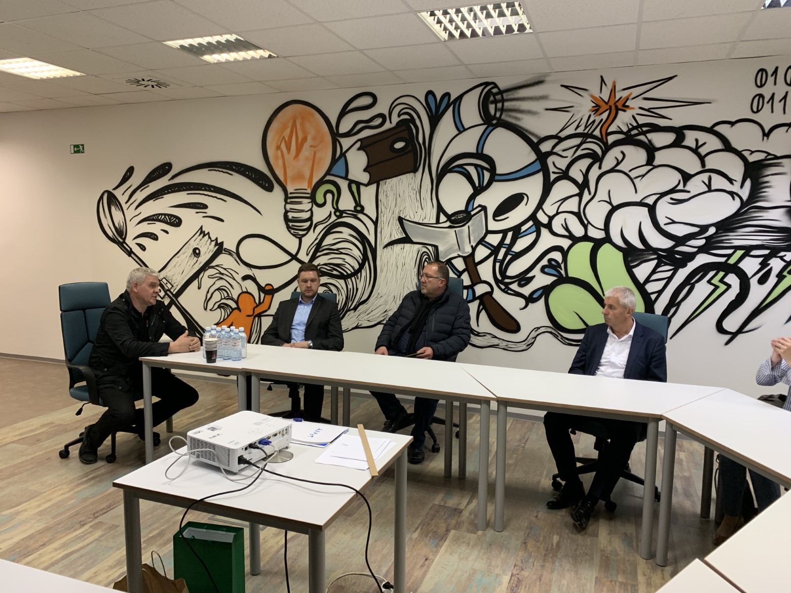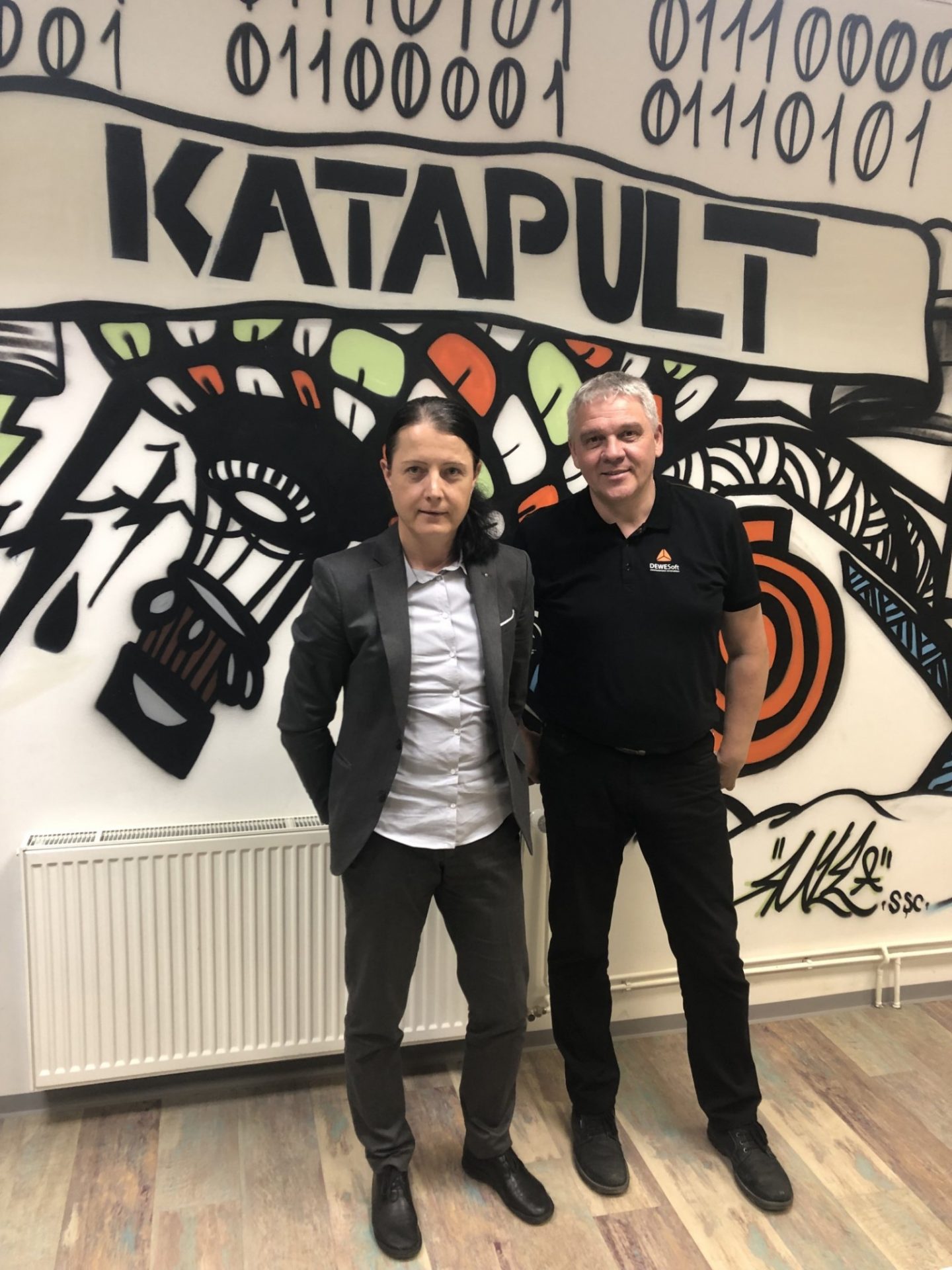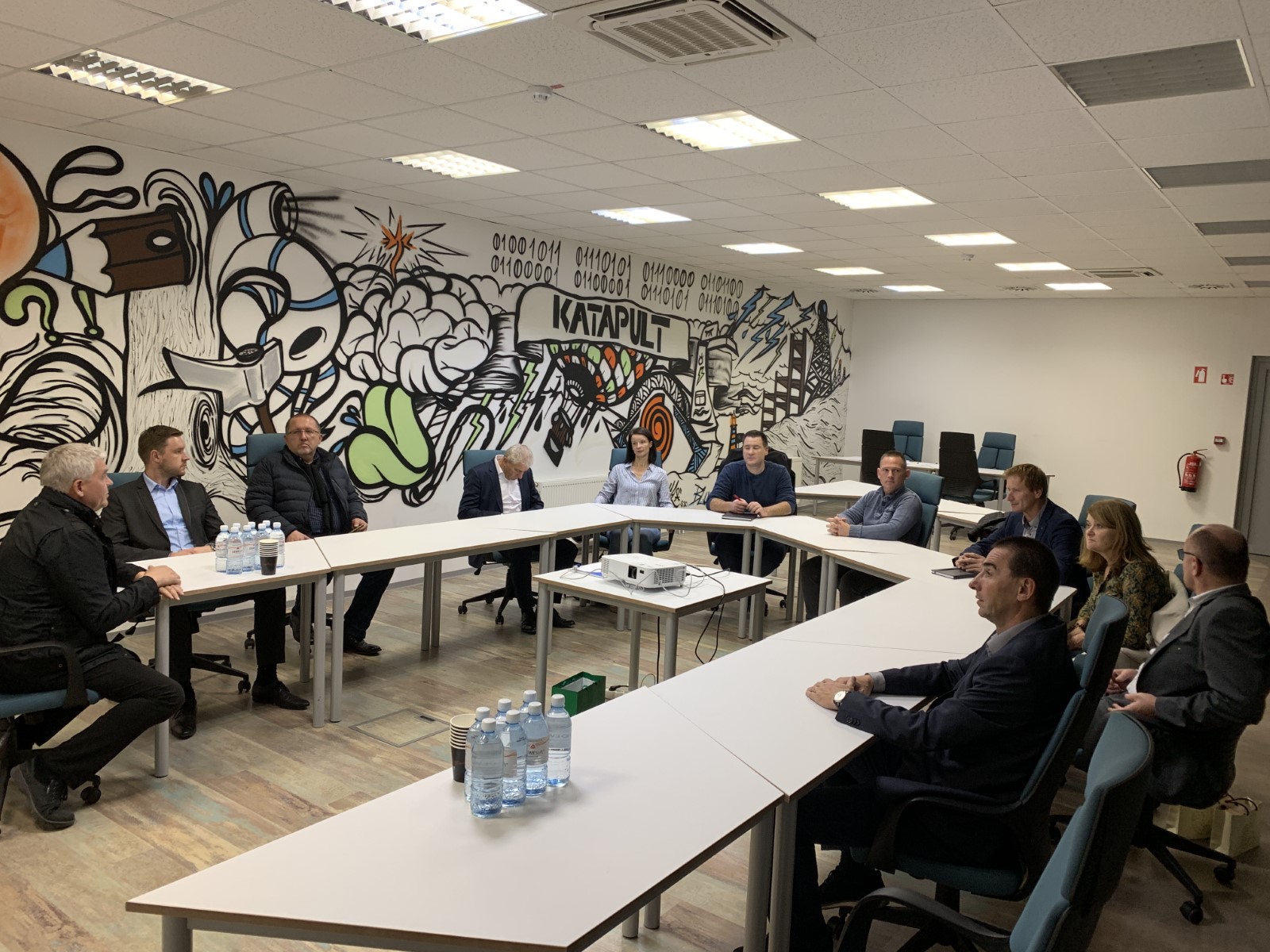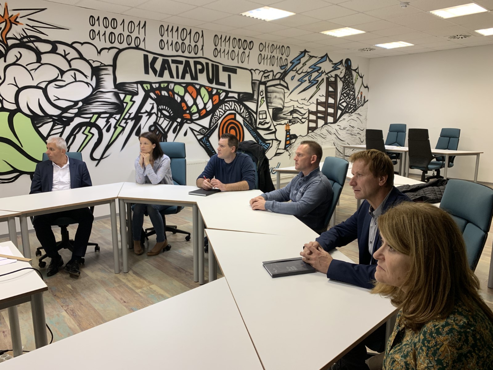 Drugi del obiska je bil namenjen predstavitvi in ogledu PODJETNIŠKEGA POSPEŠEVALNIKA KATAPULT, ki ga je v celoti financiral DEWESoft z namenom pomagati mladim podjetnikom pri prvih korakih na podjetniški poti – zagonska podjetja imajo na voljo infrastrukturo KATAPULTA kot tudi mentorstvo in opremo podjetja DEWESoft. Na ta način lahko preskočijo zagonske ovire, s katerimi se srečuje večina podjetij na začetku poslovnih poti.